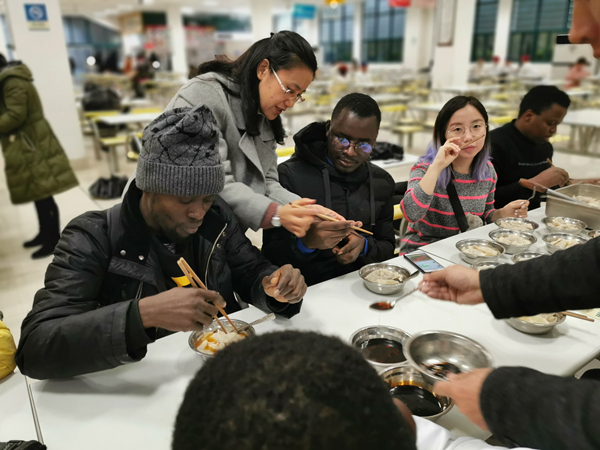 为加深留学生对中华传统文化的了解,加强与中国师生的交流,12月25日,生命科学学院水产专业留学生和国内水产研究生一起走进餐厅,学习中华传统文化“包饺子”、“用筷子”。