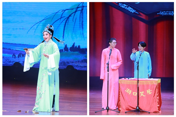 一曲由来自艺术学院的“锋芒”民族室内乐团带来的《出征》拉开了本次元旦晚会的序幕,铿锵鼓声协同洋洋二胡之音,充分调动了现场气氛。红柳艺术团湖口笑声分团带来的相声《我爱师院》以诙谐风趣的表演抓住了观众的眼球,引发了湖师人的共鸣。“罗衣姿风引,轻带任情摇”,越剧《何文秀•桑园访妻》、舞蹈《满园春色》将我国戏舞文化之美展现得淋漓尽致。小品《致芳华》,则将一段永恒、剔透如琥珀的青春往事呈现于观众眼前,奋不顾身的天真惹人垂怜。紧接着由师生合作带来的武术表演《龙腾狮武》更是将现场气氛推向高潮。街舞《Cross Burning Dance》在文学院、工学院同学的精彩演绎下,让人热血沸腾。校团委全媒体中心、校礼仪队、校广播台和文学院启明剧社共同表演的朗诵《我在青春驻足》展现了青春的美好,将现场观众带进了一段段诗意的故事。国际学院留学生带来的歌舞《茉莉情》,用他们优美的舞姿和动人的歌声传达了对于中国文化的热爱。由教师携十佳歌手表演的歌曲串烧《青葱岁月》精彩绝伦,体育舞蹈队带来的舞蹈《拍拍拍》激情四射,点燃了现场观众的热情。最后,本次元旦晚会在一曲青春洋溢的《我们都是追梦人》中表达了全体师院人不忘初心、砥砺奋进的宣言。