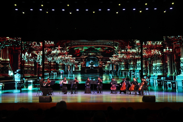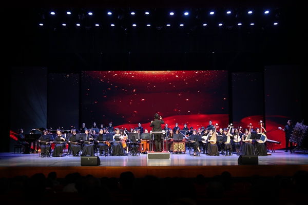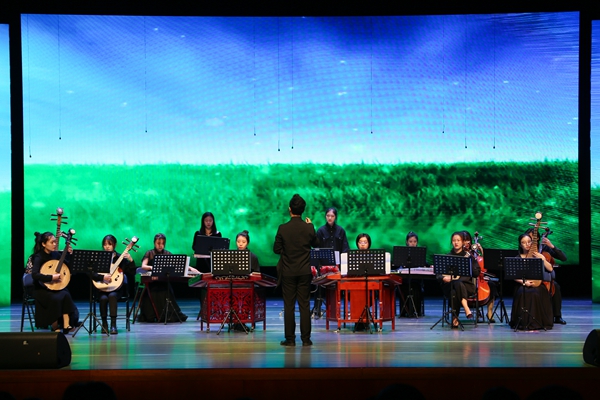 新年音乐会以满含激情与新春气息的《春节序曲》为开场曲,拉开了序幕。接下来,由艺术学院师生带来的演出异彩纷呈。有民乐团演奏的《思源》,徐川、王侪升温情演唱的男女声二重唱《默默倾听》,舞蹈团群舞《踮步桥水清悠悠》,“锋芒”民族室内乐团演奏的《春天》,艺术团的新时代湖州三跳《十二月和谐花名赋》,西洋乐管弦室内乐团演奏明快优雅的《G大调小夜曲》第一乐章,彭钰非、高腾表演的双人舞《花境游缘》,周媛、任彦洁演奏热情奔放的钢琴四手联弹《匈牙利舞曲第一号》,还有由合唱团呈现的优美深情的女声合唱《天之大》、青春洋溢有冲劲的混声合唱《夜空中最亮的星》。最后,在饱含美好祝愿与细腻深刻爱国情感的歌舞《和祖国在一起》中,本次音乐会圆满落下帷幕。