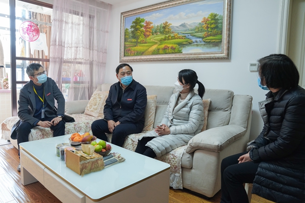 随后,校领导们分别带队走访慰问了驰援武汉、温州医疗队队员的家属。在走访过程中,领导们将之前通过视频对话所了解到的情况转告给了医疗队各队员的家属们,让家属们放心,队员们在前方一切安好,学校和医院将是他们坚强的后盾。