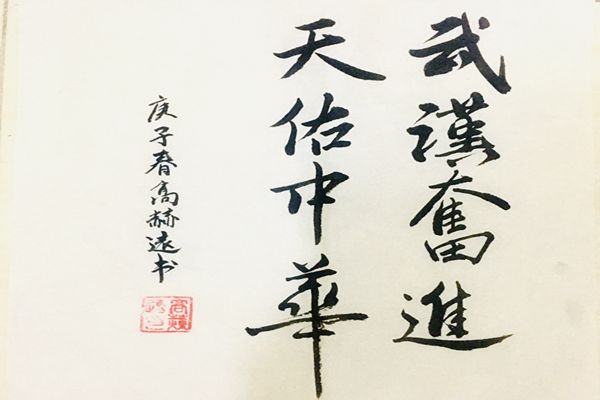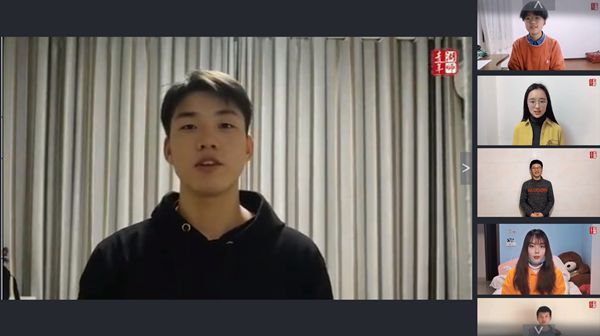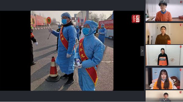 高赫远同学利用网络直播的方式和同学们分享了自己的书法作品“武汉奋进,天佑中华”,借此为服务在防疫一线的志愿者们点赞,传递青年力量。