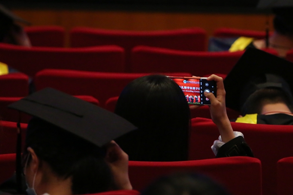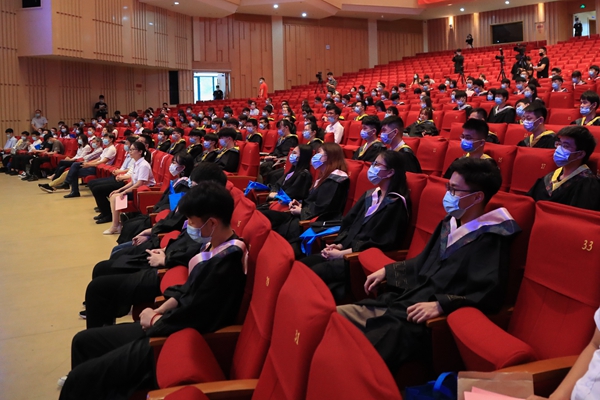 因疫情防控工作需要,本次毕业典礼以主分会场形式举行,并进行了全程直播,直播共有2万多人观看。各二级学院院长、求真学院执行院长、党委(总支)副书记,辅导员,毕业班班主任,部分师生代表在分会场参加了典礼。