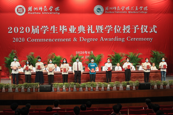 典礼上,校党委书记金佩华为省优秀毕业生代表颁发荣誉证书,校领导班子成员为毕业生代表颁发毕业证书。