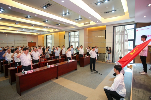 随后,金佩华带领在场全体党员面向党旗重温入党誓词。