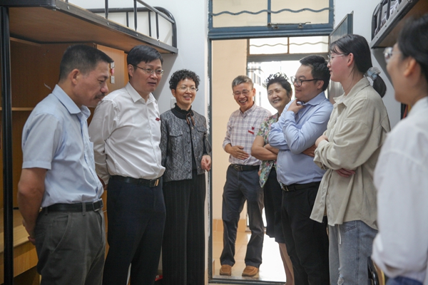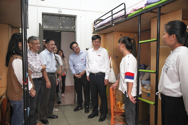 随后,金佩华、蒋云良分别带队走访了学生寝室,对新生们表示慰问。“你来自哪里”“学什么专业”“对住宿条件还满意吗”“喜不喜欢这里的校园环境”,校领导们与新生们进行了亲切的交谈,鼓励新生们尽快适应新的环境,叮嘱新生们要把握好大学的时光,发奋图强,实现理想抱负。新生们纷纷表示会努力学习,争取毕业后能从事心仪的工作或考上研究生。