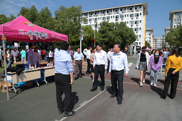 10月6日,我校迎来了2020级新生。校党委书记金佩华,校长蒋云良,校党委副书记丁敢真,副校长舒志定、潘音,党委委员、党校办主任劳士健在相关部门负责人的陪同下走访了校内各个新生接待点,对参与新生接待的师生志愿者表示慰问。