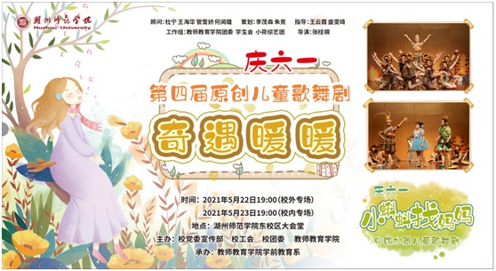 在“六一”国际儿童节来临之际,教师教育学院学前教育学系师生倾情打造原创儿童歌舞剧《奇遇暖暖》在东校区会堂上演,本场演出将给全校师生带来一场妙不可言的视听盛宴,用这样特别的方式,共同庆祝“六一”儿童节。现将相关安排通知如下: