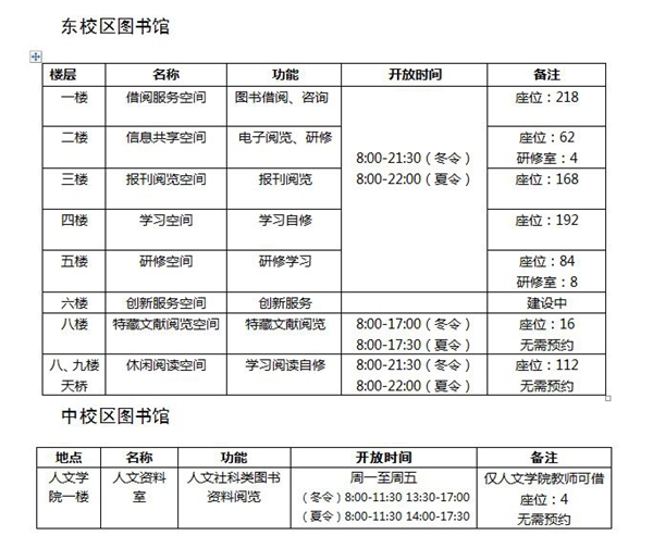 为了让师生读者全面了解并充分利用图书馆的空间资源,更好地服务学校学科建设、专业建设、人才培养,有效发挥图书馆的服务育人功能,图书馆现将各类空间分布及功能情况向师生读者公告如下: