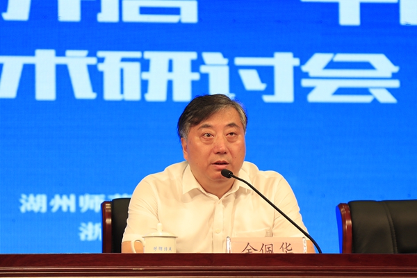 金佩华代表学校向与会代表的到来表示热烈欢迎。他介绍了湖州的悠久历史,并从湖州是习近平总书记“绿水青山就是金山银山”理论的诞生地、全国“美丽乡村”建设的发源地、“盛世修典——‘中国历代绘画大系’精品巡展”的全国首展地三个方面介绍了湖州的发展近况及我校的发展状况,总结概括了图书馆在学校教学、科研和文化育人中发挥的重要作用。他指出,本次会议以开启“十四五”新征程为主题,对于促进各校图书馆业务水平的提升具有重要的意义,希望与会专家能够关心和支持湖州师范学院图书馆事业的发展,支持湖州师范学院的发展。