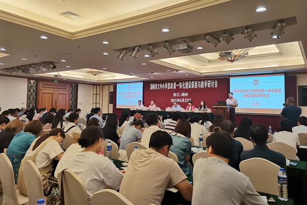 6月23日,由我校与湖州市教育局主办,我校马克思主义学院承办的“湖州市大中小学思政课一体化建设课程与教学研讨会”在湖州举行。副校长舒志定出席。来自湖州市小学、初中、高中思政课教师代表,我校师生代表130余人参加了会议。