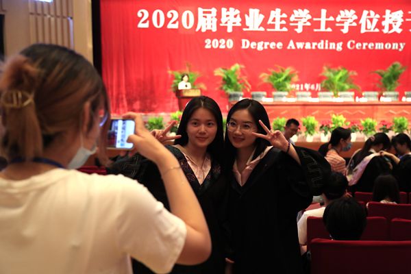 去年,由于新冠疫情防控的需要,学生毕业典礼及学位授予仪式以部分学生代表参加、网络直播的形式进行。当时,学校郑重承诺,会为2020届毕业生们补办一场学位授予仪式。今日,共有285位毕业生返校参加了学位授予仪式。