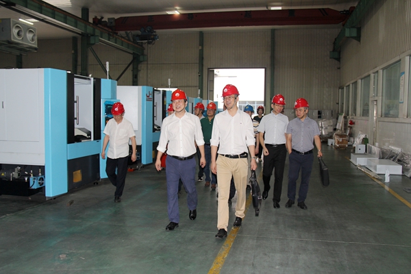 李庆峰一行还实地参观了浙江振兴阿祥集团有限公司机加车间、冷作车间、机床车间,观看浙江振兴阿祥集团宣传片,对集团的基本概况和主营业务进行了详细了解。