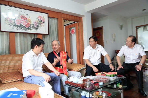 建党百年之际,校领导金佩华、蒋云良、陈永华、丁敢真、舒志定、任伟海、潘音等在党委校长办公室、组织部、宣传部、人事处、学工部、研究生院、后勤服务中心等职能部门干部的陪同下,走访慰问了老干部、老领导和困难党员,向他们致以诚挚问候,送去组织关怀。