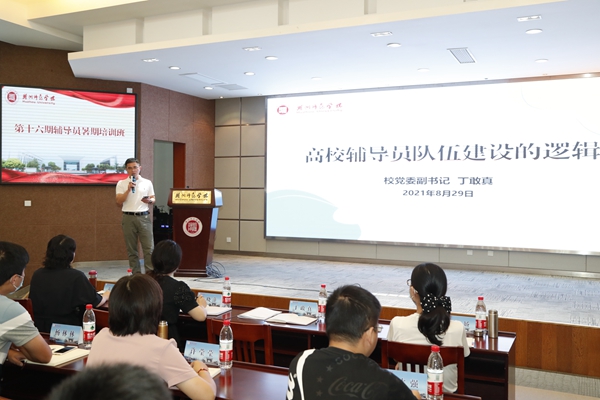 为深入学习贯彻习近平新时代中国特色社会主义思想,贯彻落实《普通高等学校辅导员队伍建设规定》精神,切实加强辅导员队伍专业化职业化建设,8月27日至29日,我校举办第十六期辅导员暑期培训班。校党委副书记丁敢真出席并作报告,党委学工部、研工部、团委、国际学院、继续教育学院负责人,各二级学院党委(总支)副书记、全体专职辅导员共86人参加培训。