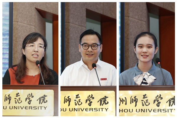 人文学院熊蓓怡同学向全体教师致以节日的祝贺。她表示,老师的榜样作用让自己立志传承“师范精神”、做好“立德树人”的工作、真真切切做到“学为人师,德智体美劳同发展;行为世范,苏湖教法再谱新章”。