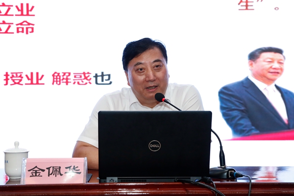 9月8日下午,金佩华以《融入湖师院,争当“大先生”》为题,围绕“走进湖州、共享美丽”“读懂师院、共谋未来”“立德树人、共悟习语”三个方面,为新教工上了精彩一课。