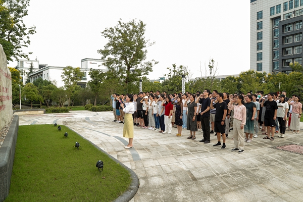 在吴兴园习近平总书记来校重要指示精神文化石前,全体新教工进行庄严的入职宣誓,宣誓仪式由陆增镛教师奖获得者、马克思主义学院何燕博士领誓。接下来,校教师教学发展中心还将对专任教师开展教学能力培养。