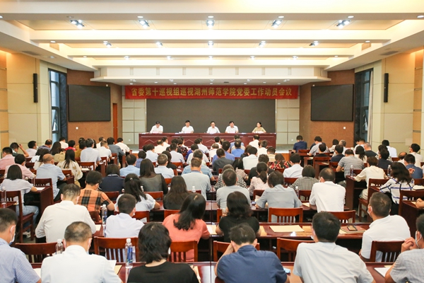 根据省委统一部署,2021年9月13日下午,省委第十巡视组巡视湖州师范学院党委工作动员会议召开。会前,省委第十巡视组组长夏建成主持召开与院党委书记金佩华、院长蒋云良的见面沟通会,传达了省委书记专题会议的有关精神,通报了有关工作安排。会上,夏建成作了动员讲话,对做好巡视工作提出要求。金佩华主持会议并作表态发言。