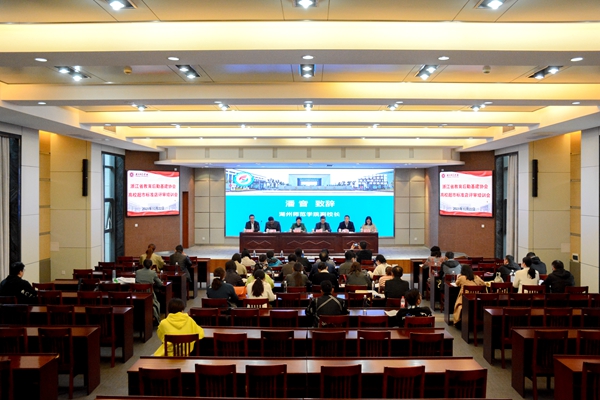 潘音致开幕词。她对各兄弟高校商贸战线的同仁表示热烈欢迎,介绍了湖州市、我校和资产经营有限公司的基本情况,以及我校的校园生活服务工作,并希望能够加深与各兄弟高校的工作交流,积极探索校园生活服务新业态、新举措,共同为浙江省高等教育事业的发展贡献力量。