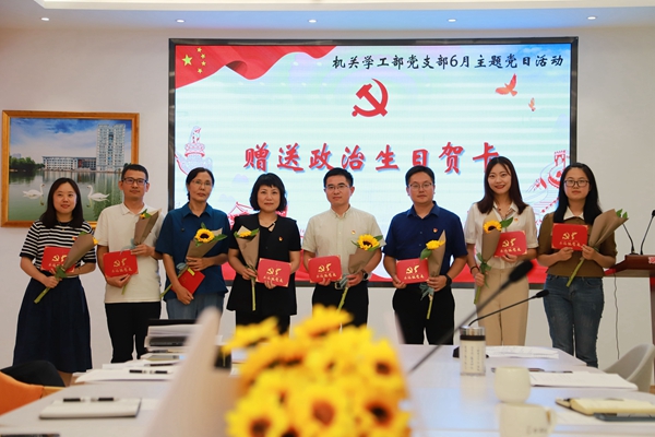 为进一步提升党员的党性修养和宗旨意识,充分发挥党员先锋模范作用,6月21日下午,机关学工部党支部开展“过政治生日,忆入党初心”主题党日活动,为1-7月入党的11名同志举行了庄严又温馨的“政治生日会”。校党委副书记丁敢真以普通党员身份参加本次活动。