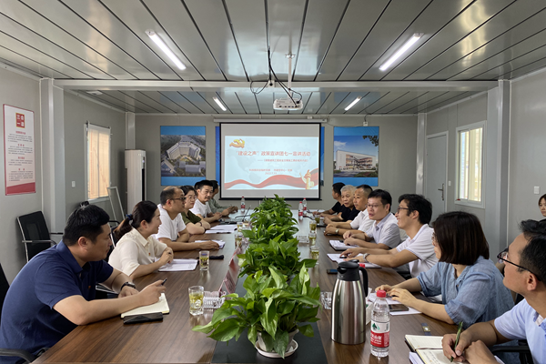 7月15日,市建管中心一支部来我校研究生公寓楼项目部开展题为《调整建筑工程安全文明施工费的相关内容》的政策宣讲活动。市建管中心相关负责人、科技园项目临时党支部成员、项目部管理骨干及相关班组长参加宣讲会。