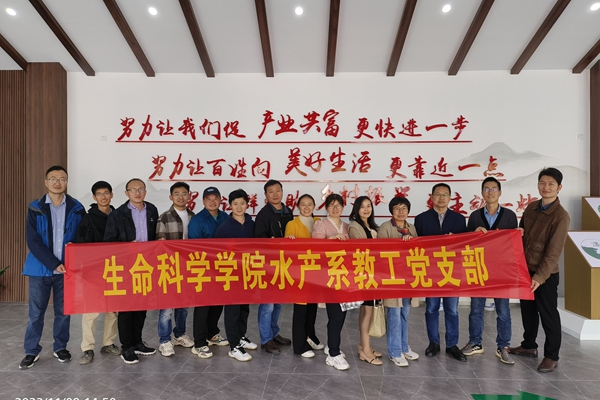 各系教师党员深入产业基地开展了学习宣传贯彻“二十大精神”的专题党日活动,其中水产系教工党支部在长兴县洪桥太湖漾养殖基地进行了现场党课学习。湖州市劳动模范、水产系教师党员赵汉取带领支部党员参观并介绍了数字化养殖基地,并感慨说:“党的二十大首次将教育、科技、人才‘三位一体’统筹部署,这对我们高校教师来说,既是责任更是使命,让我们一起将学科优势助力地方产业发展,努力促产业共富更快进一步,让百姓向美好生活更靠近一点!”