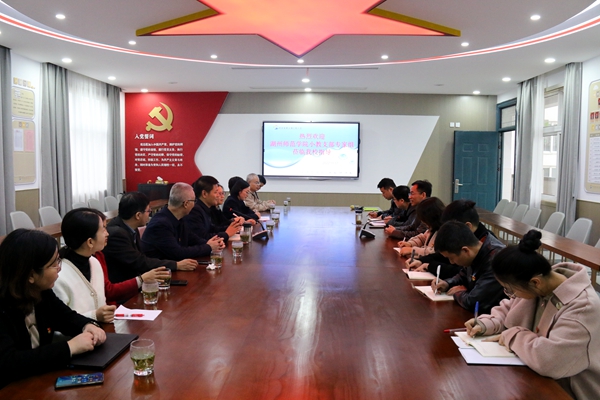 在上强小学,双方全体党员同志围绕学习宣传贯彻党的二十大精神开展情况,分别结合党支部具体工作和自身工作实际,从小学教育工作体会、师范生人才培养、小学教师成长和科学研究等方面交流了学习心得体会。优秀校友、上强小学校长茅建国作了“开展乡情教育,培育绿行少年”主题交流报告,从“营造乡情育人的环境、开设乡情育人的课程、开展乡情育人的活动、实施乡情育人的评价”四个方面介绍了学校的绿色文化理念体系和乡情教育实施情况。双方就“乡情教育”如何更有效地开展和推广进行研讨,党员同志们纷纷表示,在服务基础教育方面要发挥党组织的战斗堡垒作用和教师党员的先锋模范作用。