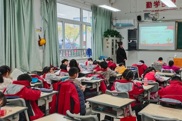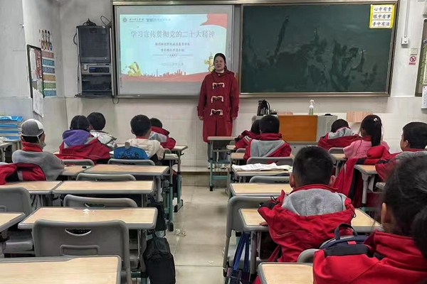 为推动学习宣传贯彻党的二十大精神,教师教育学院“学·思·享”青年理论学习小组,于12月7日前往新风实验小学举行宣讲活动,将理论宣讲融入到“三点半课堂”,让党的声音传入儿童耳中,让党的精神常驻童心。