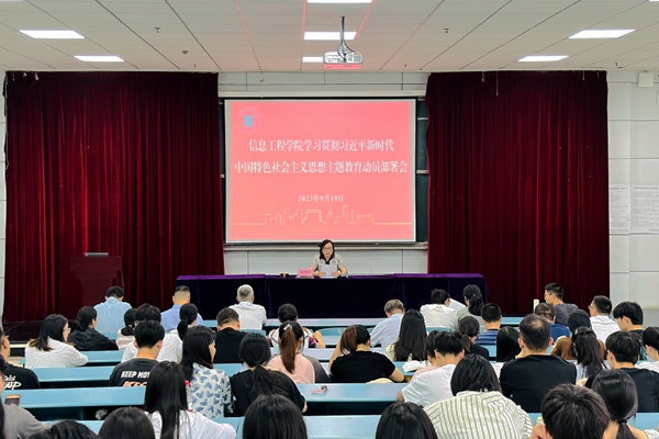 9月19日下午,信息工程学院召开学习贯彻习近平新时代中国特色社会主义思想主题教育动员部署会,学习传达中央、省委、市委和学校主题教育会议精神,动员部署学院主题教育工作。学院领导班子成员、师生党员参加会议。