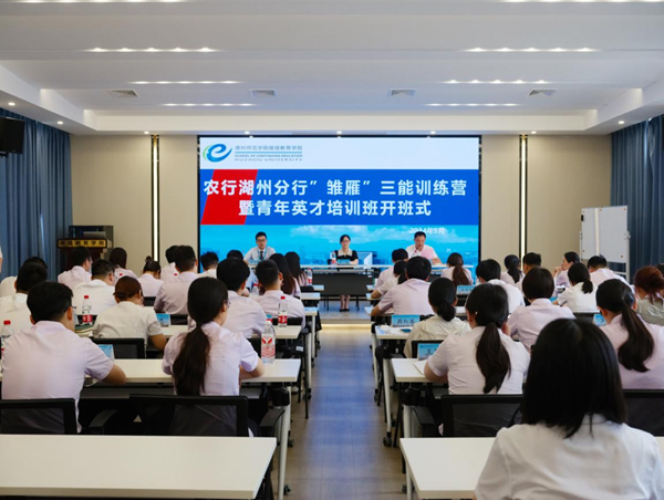 5月23日,农行湖州分行“雏雁”三能训练营暨青年英才培训班在我校继续教育学院举办,农行湖州分行人力资源部总经理沈奕,我校继续教育学院负责人,党政办负责人参加开班仪式。