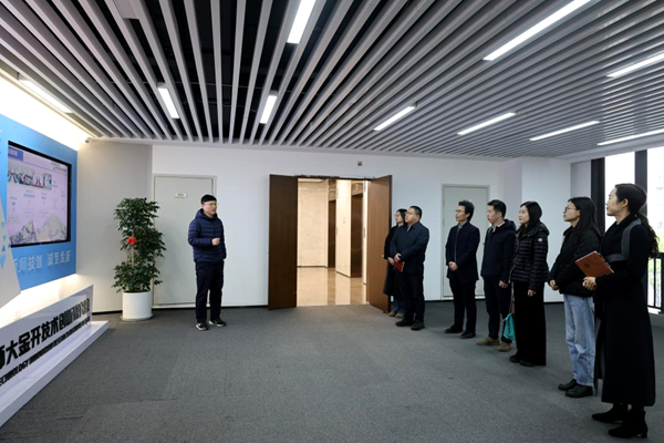 会前,我校一行来到浙江师范大学金开技术创新研究院调研交流,金开院院长代伟向我校调研团介绍了金开院发展情况,带大家参观了文化墙、创业办公区、实验室等区域并重点讲解了莱格新材料、中轶信息等在孵企业现状。双方还就场地建设及运营情况、项目孵化及落地情况、研究院体系机制构建情况等展开深入交流。