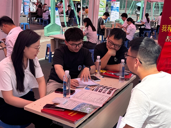 招聘会现场,企业负责人通过展位展示、企业宣讲、现场问答等多种形式,向前来求职的同学们详细介绍企业文化、岗位需求、职业发展路径等信息。同学们积极与企业交流互动,进一步了解招聘政策,更加清晰地认识自己的职业规划、就业去向。来自工学院机械设计制造及其自动化专业的阮同学说:“我现场投递了4份简历,都是与机械专业相关的岗位,后续会去企业参观,与HR进一步交流。”