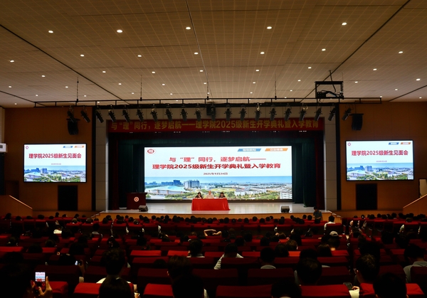 9月24日晚,理学院在中校区大学生活动中心举行2025级新生开学典礼暨入学教育。院长沈彩万、党委书记毕玉凤、副院长顾海霞,各系主任、新生班主任、辅导员和2025级全体新生参加。