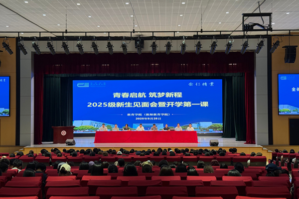 9月28日晚,教育学院“青春启航,筑梦新程”2025级新生见面会暨开学第一课在大学生活动中心举行。教师学院党委书记沈江龙、执行院长李茂森、副院长李梦霞、党委副书记沈卫,系主任、新生班主任、辅导员以及2025级全体新生参加。见面会由沈卫主持。
