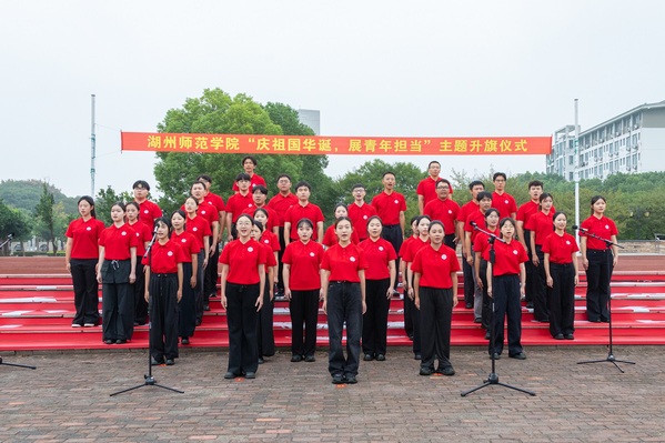 仪式在全体师生齐声高唱《歌唱祖国》的激昂旋律中圆满落幕,以深情歌声抒发对祖国的热爱,以实际行动践行“明体达用”校训,为建设高水平湖州师范大学贡献青春力量的坚定决心。