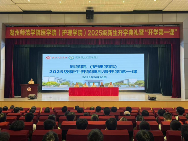 医学院(护理学院)党委书记甘顺良为全体2025级新生讲授“开学第一课”。甘书记从湖州深厚的人文底蕴切入,系统介绍了学校及学院的发展历程、人才培养、校园服务等方面情况,勉励新同学们成长为有理想、敢担当、能吃苦、肯奋斗的卓越医学人才。