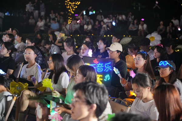 由音乐学院承办的第三届“拾光拾音,心随乐动”拾光音乐节在月亮广场热情启幕。舞台上,同学们从深情独唱到默契合唱,从婉转抒情到激昂高歌,旋律在夜色中流淌、交织,将现场气氛一次次推向高潮。舞台下,师生或随乐轻摇,或闭目沉醉,点点荧光随歌声摇曳生姿,与湖畔夜景交相辉映,共同营造出温馨而充满活力的青春现场。音乐节不仅为学生搭建了展示才艺的舞台,更让大家在忙碌学业中感受到艺术的滋养与音乐的慰藉,真正实现了“以音舒心,以美润心”的育人目标。