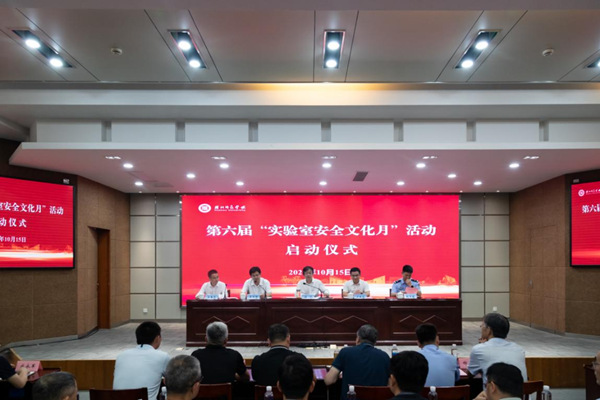 10月15日下午,我校第六届“实验室安全文化月”活动开幕。校长盛况、校党委副书记丁敢真、副校长李庆峰,市公安局吴兴分局副书记、政委赵亚琪出席开幕式。学校实验室安全工作领导小组全体成员、相关职能部门负责人、各二级学院负责人、实验中心主任、省市重点实验室相关负责人、获奖代表、研究生导师代表、实验技术人员、学生代表等180余人参加了开幕式。开幕式由李庆峰主持。