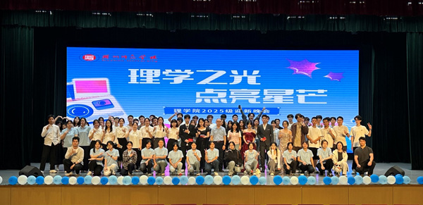 10月15日晚,理学院“理学之光,点亮星芒”2025级迎新晚会在大学生活动中心精彩上演。理学院院长沈彩万、党委副书记蔡维超,新生班主任、辅导员及全体新生参加活动。