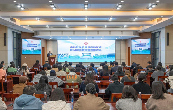 在全面推进本科教育教学审核评估整改、科学布局“十五五”发展规划的关键时期,为进一步深化教育教学改革,推动人工智能深度融合,11月4日,学校召开本科教学质量月启动仪式暨AI赋能教学管理推进会。校长盛况、副校长舒志定出席,教育质量监测中心、人事处、学生处、实验室建设与管理处、团委、信息技术中心负责人,教务处、国际交流合作处、继续教育学院、图书馆等单位相关负责人、科级干部、管理干部,各二级学院教学副院长、教学办主任、教学秘书,校督导代表等参加。仪式由舒志定主持。