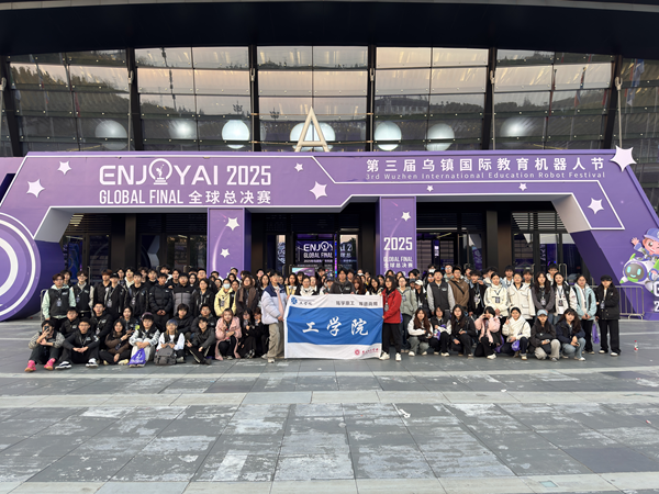 12月5日至7日,ENJOY AI 2025全球总决赛暨第三届乌镇国际教育机器人节在浙江乌镇举行,盛会吸引了来自全球数十个国家和地区的数万名青少年选手同场竞技。为助力本届大赛顺利完成,工学院派出100多名志愿者全程参与赛事服务,为赛事的顺利举办提供了有力保障。