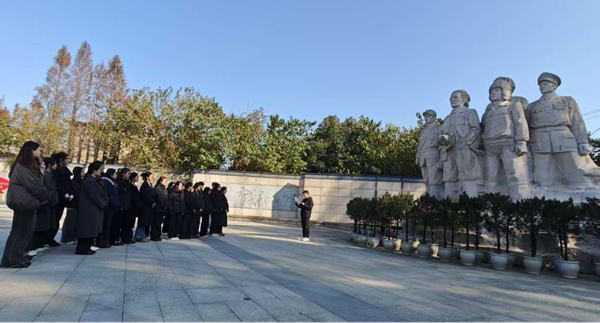 在烈士陵园,全体人员在纪念碑前整齐列队,高唱国歌,敬献鲜花并集体默哀,深切缅怀革命先烈。随后,队伍前往钱壮飞纪念馆。在讲解员的带领下,同志们通过历史图片、文物和多媒体展示,学习了钱壮飞烈士投身革命、潜伏敌营、保卫党中央以及最终壮烈牺牲的光辉事迹,深刻感受其对党忠诚、敢于牺牲的革命精神。