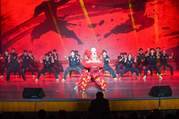 第一篇章“大”奋斗在炽热的节奏中开启。教育学院(教师教育学院)带来的《你要跳舞吗》以轻盈跃动的身姿瞬间点燃全场,青春朝气扑面而来。体育学院表演的《武动新年,“师”跃未来》,拳脚生风,气势如虹,尽显中华武术的豪迈与力量。校园十佳歌手联袂献上歌曲串烧《致我们闪耀的青春与明天》,熟悉旋律勾起满满共鸣。音乐学院以器乐演奏《燃情岁月》收束本章,乐音如叙事诗般诉说着学校发展路上的每一步。