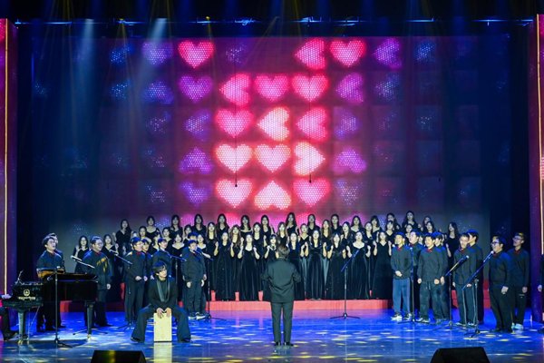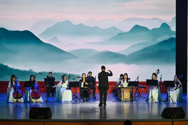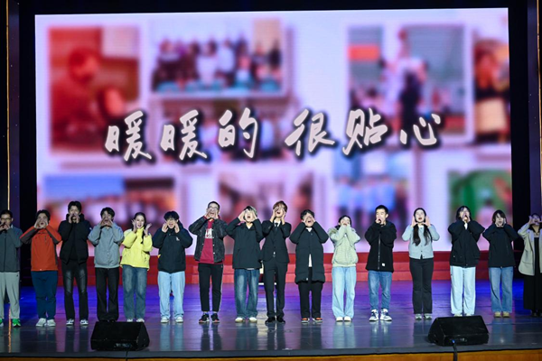 第三篇章“大”团圆将温暖与希望汇成前行的光。教育学院(教师教育学院)同学们带来的舞蹈《美丽中国》场面恢弘,嘹亮歌声、舒展舞姿饱含对祖国的热爱赞美。退休工作处选送的退休教职工合唱《萱草花》,尽显岁月静好的温情。校街舞队带来《元启·向阳》,酷炫舞步展现青年向上力量。国际教育学院的《We Are The World》唱响多元包容,以歌声传递跨国友爱。音乐学院校友的《写意山水》民乐演奏,旋律古朴悠远,尽显传统文化魅力。