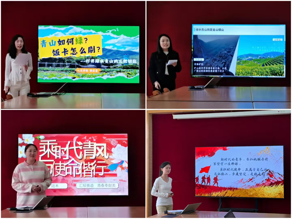 四位师生围绕生态文明、榜样力量、长征精神、区域发展等主题展开宣讲,陆禾、黄语芹同学分别以生动故事阐释奉献精神与长征精神;辅导员吴安迪、张美慧结合工作经历,讲述“两山”理念实践成果。施伟伟老师结合多年演讲指导经验,逐一对四位师生的展示进行了细致点评。内容上,她强调思政微课应“以小见大”,更要结合自身经历,用真实的故事打动人心;发音上,她建议要注重语速把控和情感节奏,让语言既有感染力又有可信度;呈现形式上,她鼓励授课时要善用肢体语言、多媒体辅助等手段,增强微课的互动性与代入感。施老师细致入微的点评,让在场师生对如何讲好思政微课有了更清晰的认识。