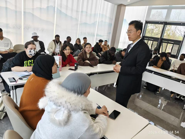 3月25日下午,北京师范大学经济与工商管理学院郭垍博士应邀来访经济管理学院,在德清湖校友中心人才会客厅为师生们带来一场题为《世界经济与中国》的精彩讲座。本次讲座由经济管理学院国际交流中心主任周丹主持,学院相关专业教师与国际学生到场聆听,现场座无虚席,气氛热烈。