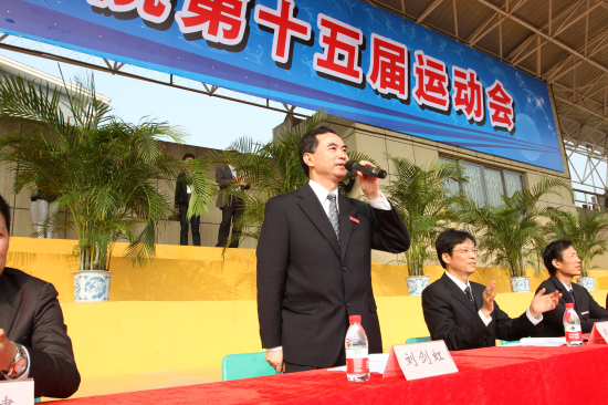 热烈欢呼声响彻天际,校党委书记刘剑虹宣布我校第十五届运动会开幕。