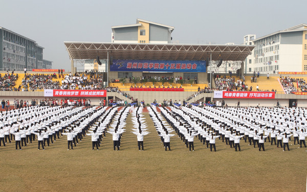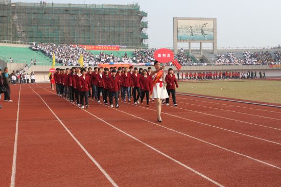 紧接而来的方阵代表以专业特色展现运动风采。教师教育学院学前教育的同学们从容而舞,形舒意广,举手投足间诠释“学高为师,身正为范”的教师法则;文学院留学生身着唐装,手持折扇,宛若惊鸿,笑傲群芳,展现人文骄子的文韬武略;信息工程学院迈着铿锵有力的步伐缓缓而来,巨型的wifi映入眼帘,告诉我们:信工学子已然蓄势待发;心脏在跳动,热血在沸腾;医学院研究生和卓越医生教改班代表们以红色的心电图让年轻的心奋发激昂……