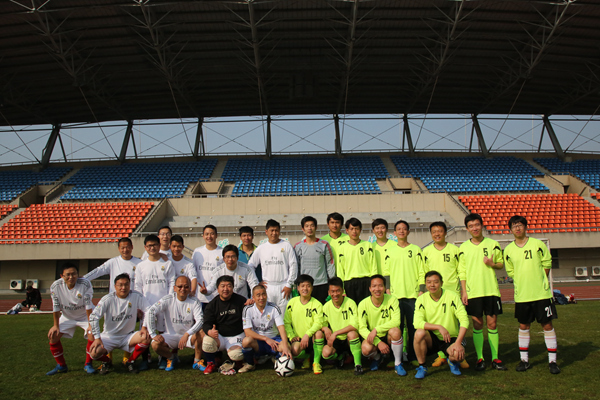 为深入推进全校教职工健身运动的开展,在校工会与理学院的关心指导下, 3月5日,我校教工足球俱乐部在金华与浙江师范大学教工队进行了一场友谊赛。