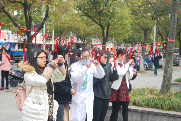 3月24日中午,门诊部、湖州市疾病预防控制中心在中校区顺利开展了形式多样的宣传咨询活动。 活动现场学校师生都被装有结核病知识问答题的许愿瓶所吸引,前来参与活动,大家拿出手机搜索着有关结核病的相关知识。活动现场设立了疾控中心专家的咨询点以及展版的宣传点,在专家的讲解下,大家对于结核病又有了更深一步的了解,懂得如何更好地去防治结核病。此外,活动现场的“肺活量大比拼”游戏也引来了很多同学的积极参与。活动后他们纷纷写下寄语,用自己的行动表达了对结核病人的关心和祝福。同时,在东西校区,阳光医疗服务团还设立了防治结核病千人签名活动,呼吁更多的人加入到宣传行列,从而参与到宣传行动中。